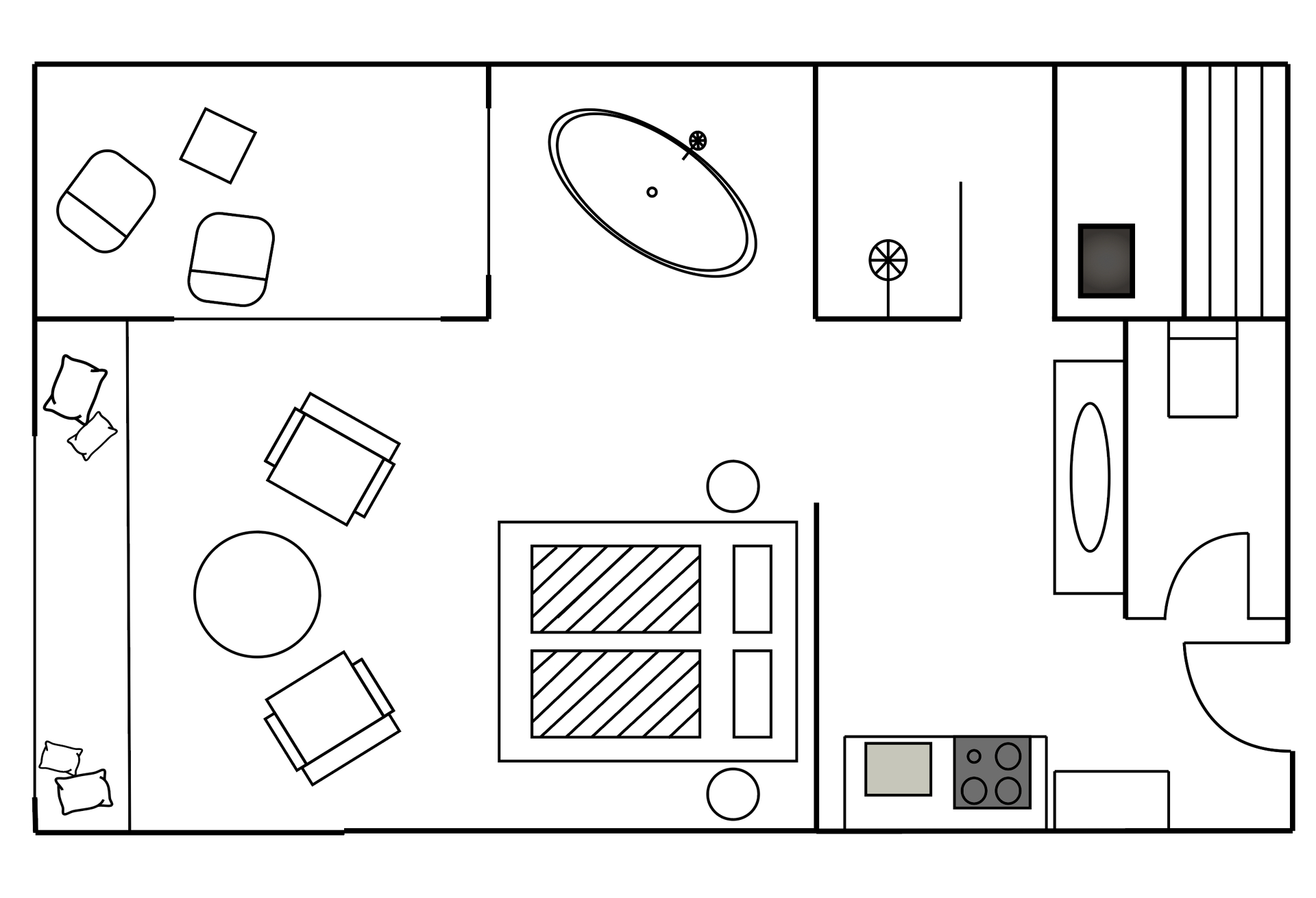 - Mini Kitchen (Kühlschrank, Kaffeemaschine, Herd, Spüle)
